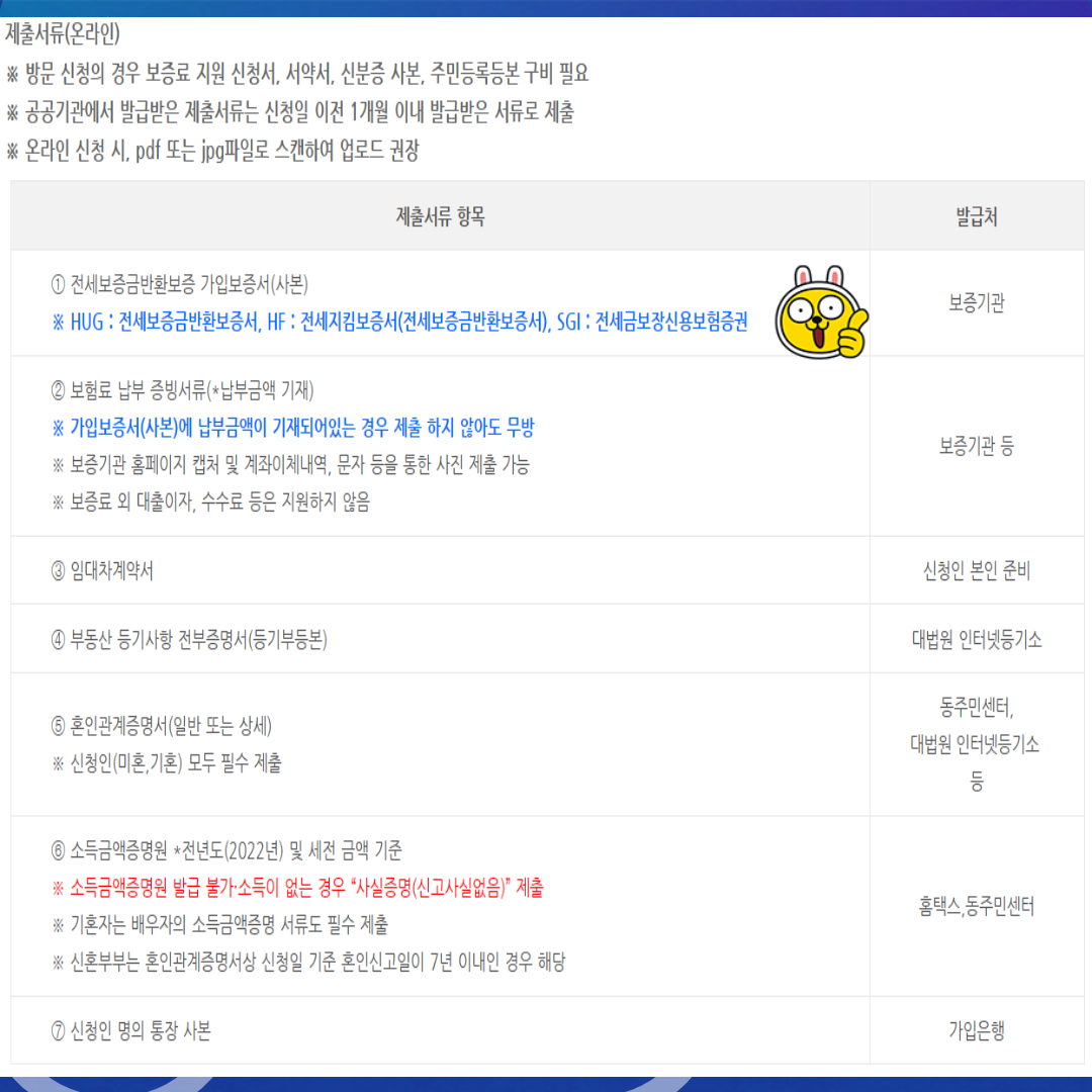 - 보험기준 : 23,1,1 이후 현재 거주지 보험 가입 및 보증료 납부 완료