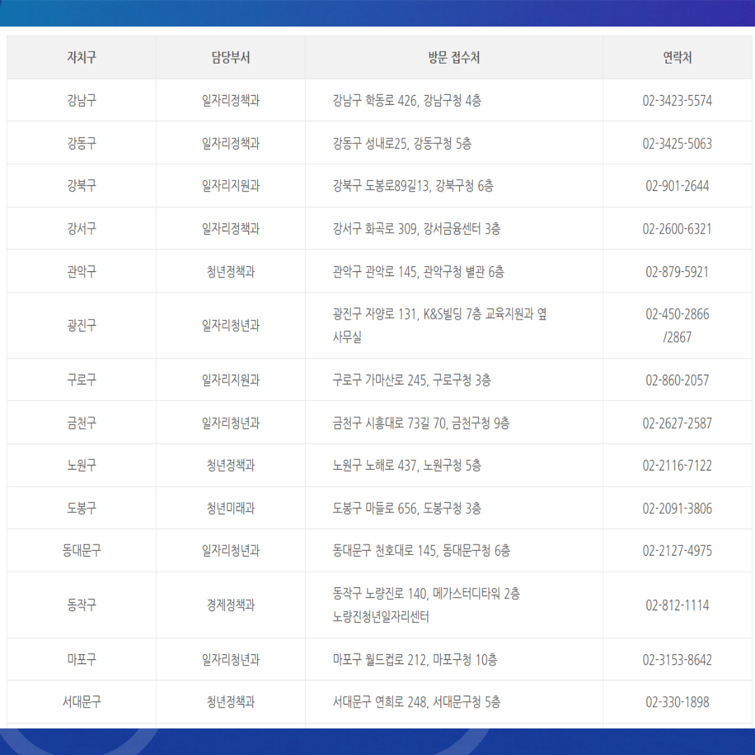 - 청년몽땅정보통(youth.seoul.go.kr) 온라인 신청 또는 방문(주소지 관할 구청) 접수