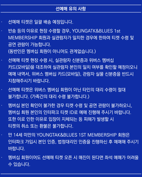 - 멤버십 구매(선예매): 위버스에서 YOUNGTAK&BLUES 멤버십 가입 후 인증